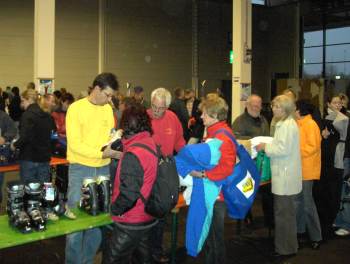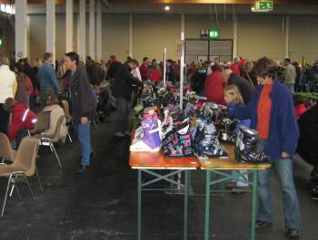 Entsprechend groß war dann auch der Ansturm auf die Fülle von Ski-, Snowboard- und Winterartikeln. Neben den gebrauchten Artikeln - gut erhaltene und zeitgemäße Kinderski gab es z.B. schon ab 20 EUR, Skistöcke ab 2 EUR - wurde das Angebot noch zusätzlich durch günstige Neuware ergänzt. Auch Kunden, die ein wenig mehr investieren wollten, hatten also ihre Chance auf gute Beratung und interessante Preise. Der Hauptgrund für den Skibasar liegt aber natürlich auch weiterhin darin, die gebrauchte Ware in den Umlauf zu bringen, was sich an einer Quote von 60 Prozent Privatanlieferern zeigt. Die Verkaufsquote der Privaten war vergleichbar mit den Vorjahren, d.h. ca. 60 % der angelieferten Artikel wurden am Samstag auch verkauft und der Erlös konnte abzüglich einer Spende von 10 % für die Jugendarbeit der Vereine abgeholt werden.
