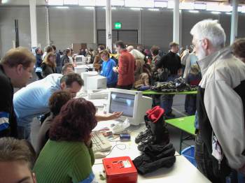 Der 24. große Häfler Skibasar am vergangenen Wochenende war für die ausrichtenden Vereine Ski-Club Buchhorn, Ski-Club Schnetzenhausen, Ski- und Bergfreunde der TSG Ailingen und der Abt. Ski- und Bergsport des VfB wieder ein großer Erfolg . Als bedeutendste Neuerung wurde in diesem Jahr zum ersten Mal die Abwicklung komplett über vernetzte PCs gemacht. Insgesamt 460 Anlieferer gaben am Freitag an 8 Kassen 4.429 Artikel nach einer Prüfung durch die Übungsleiter der Vereine ab. Am Samstag dann das gewohnte Bild: bereits vor der Hallenöffnung um 09.00 Uhr bildete sich eine Schlange vor den Toren, da die Experten natürlich wissen, dass die besten Schnäppchen ganz am Anfang gemacht werden.