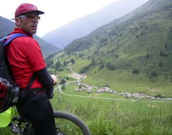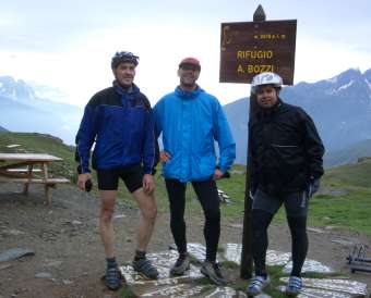 Frisch gestärkt traten wir die Auffahrt zum Gavia-Pass an, bekannt vom Giro d’Italia. Zunächst noch in der Sonne, zogen schon bald Wolken auf und kurz vor der Passhöhe erwischte es uns eiskalt. Ein Regenschauer sorgte für Abkühlung und Unbehagen und zum Glück war im Rifugio Bonetta der Kamin geheizt, so dass wir uns wieder aufwärmen und trocknen konnten. Zur Abfahrt zogen wir dann alle Regenklamotten an, die wir hatten, doch der Regen hörte dann auf und wir hofften auf Wetterbesserung. Von Pezzo aus machten wir uns dann auf ins Valle di Viso zum Aufstieg zum Rifugio Bozzi unterhalb der Montozzo Scharte. Anfangs blieb es noch trocken, doch kurz nachdem wir Case di Viso und damit die letzte Zivilisation passiert hatten, begann es zu nieseln und später wieder zu regnen. Je höher wir kamen, desto schlechter wurde das Wetter - der Nebel nahm zu und die Temperatur sank ab. Völlig durchnässt kamen wir schließlich am Rifugio an und freuten uns auf ... eine Dusche? - Fehlanzeige ... warmes Wasser? - ebenso Fehlanzeige ... naja, wenigstens der Ofen war an und so konnten wir uns und unsere Klamotten wieder einigermaßen trocknen. Der Abend war trotz der spartanischen Verhältnisse ganz amüsant und wir lernten dort Michael und Joan aus Nürnberg kennen, die dann auch die nächste Etappe mit uns zusammen fuhren.